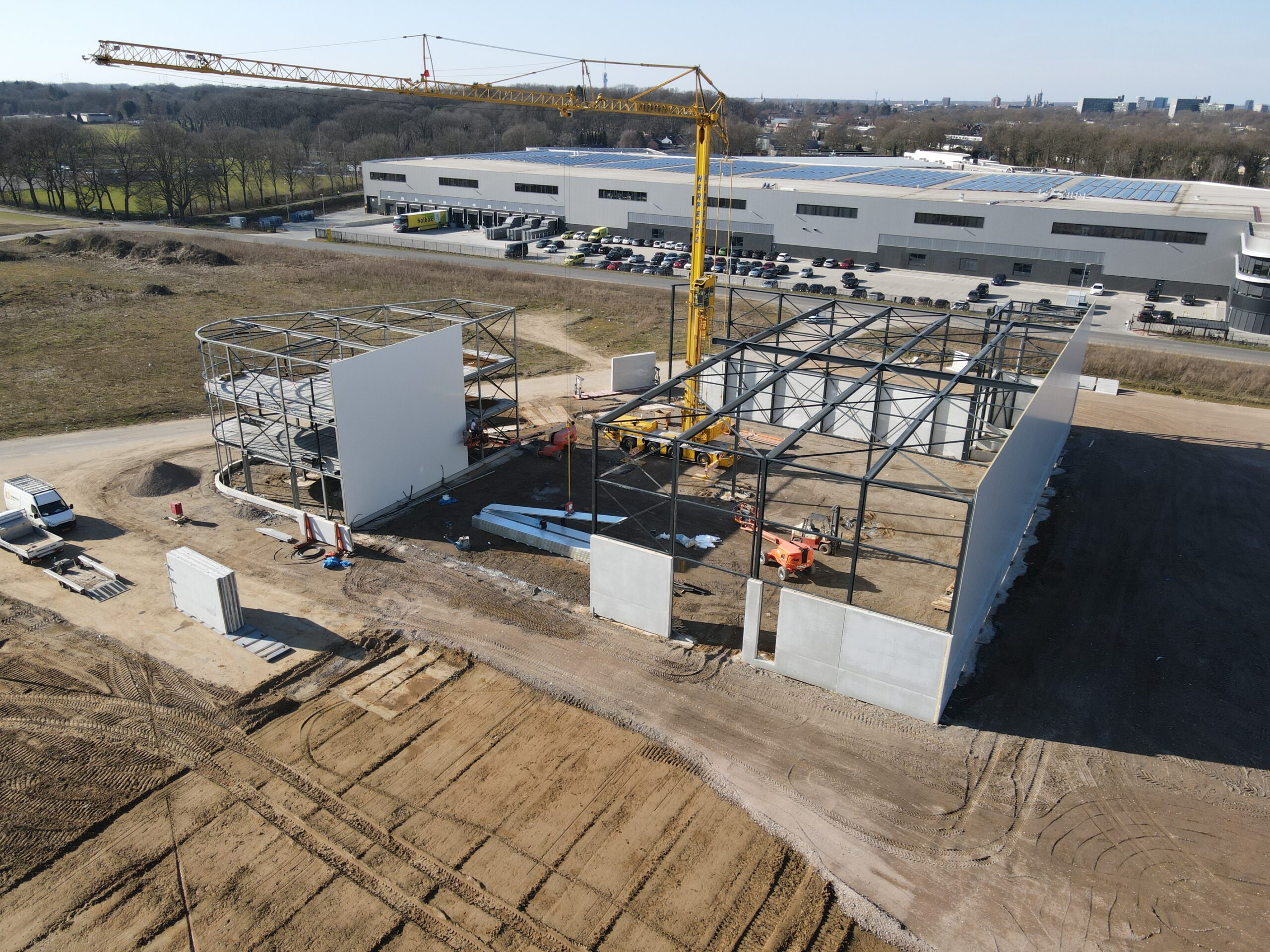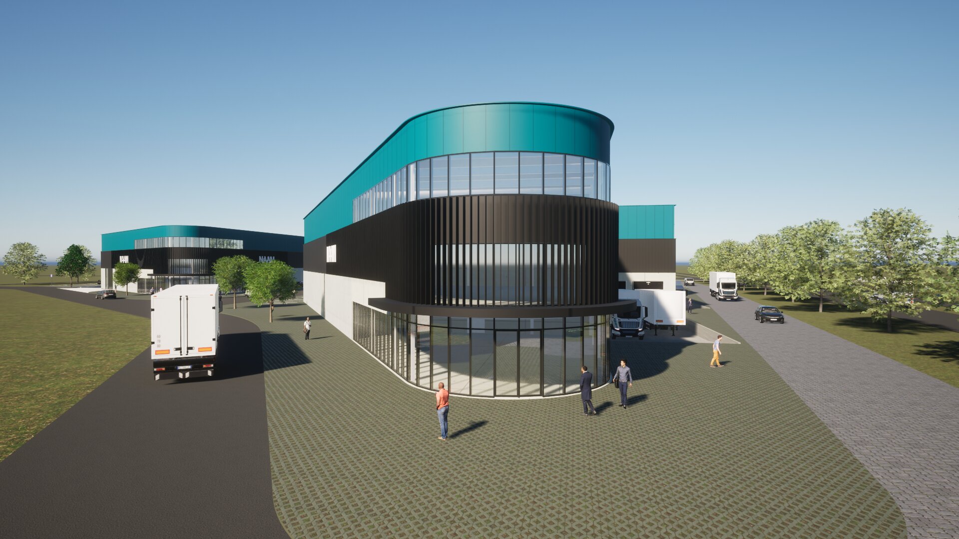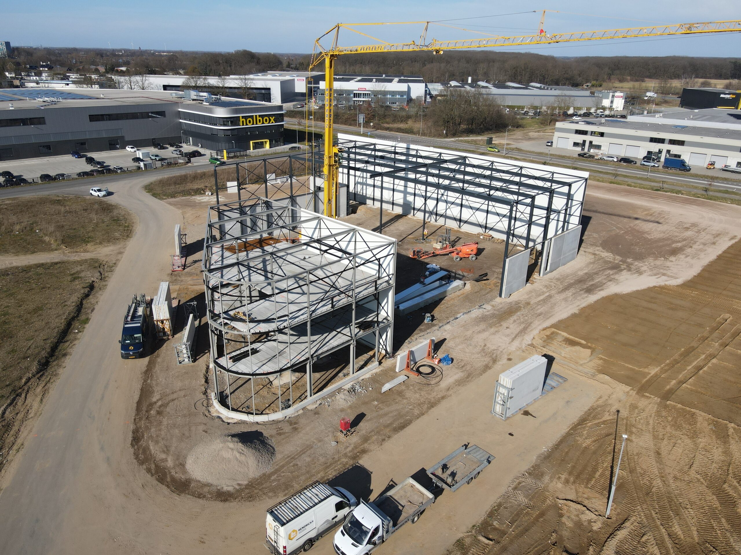 Deze opvallende multifunctionele bedrijfspanden worden in 5 delen gefaseerd gebouwd. De bouw van fase 1 & 2 is inmiddels al begonnen. De panden bevinden zich op een prominente locatie langs een doorgaande weg. Het biedt diverse mogelijkheden voor bedrijven, zoals de opslag van bedrijfswagens en de inrichting van een showroom op de begane grond. De grote glazen puien zorgen voor veel natuurlijk lichtinval op de werkplek. Bezoekers kunnen gebruikmaken van voldoende bewaakte parkeermogelijkheden. Het totale vloeroppervlak van de gebouwen beslaat ongeveer 14.500 m² en bestaat uit 5 panden, variërend in grootte van 2.500 m² tot 3.200 m². Door gebruik te maken van verdiepingsvloeren kan de beschikbare vloeroppervlakte naar wens worden verdubbeld. Daarnaast is het mogelijk om de panden onderling te koppelen en zo een grotere ruimte te creëren.