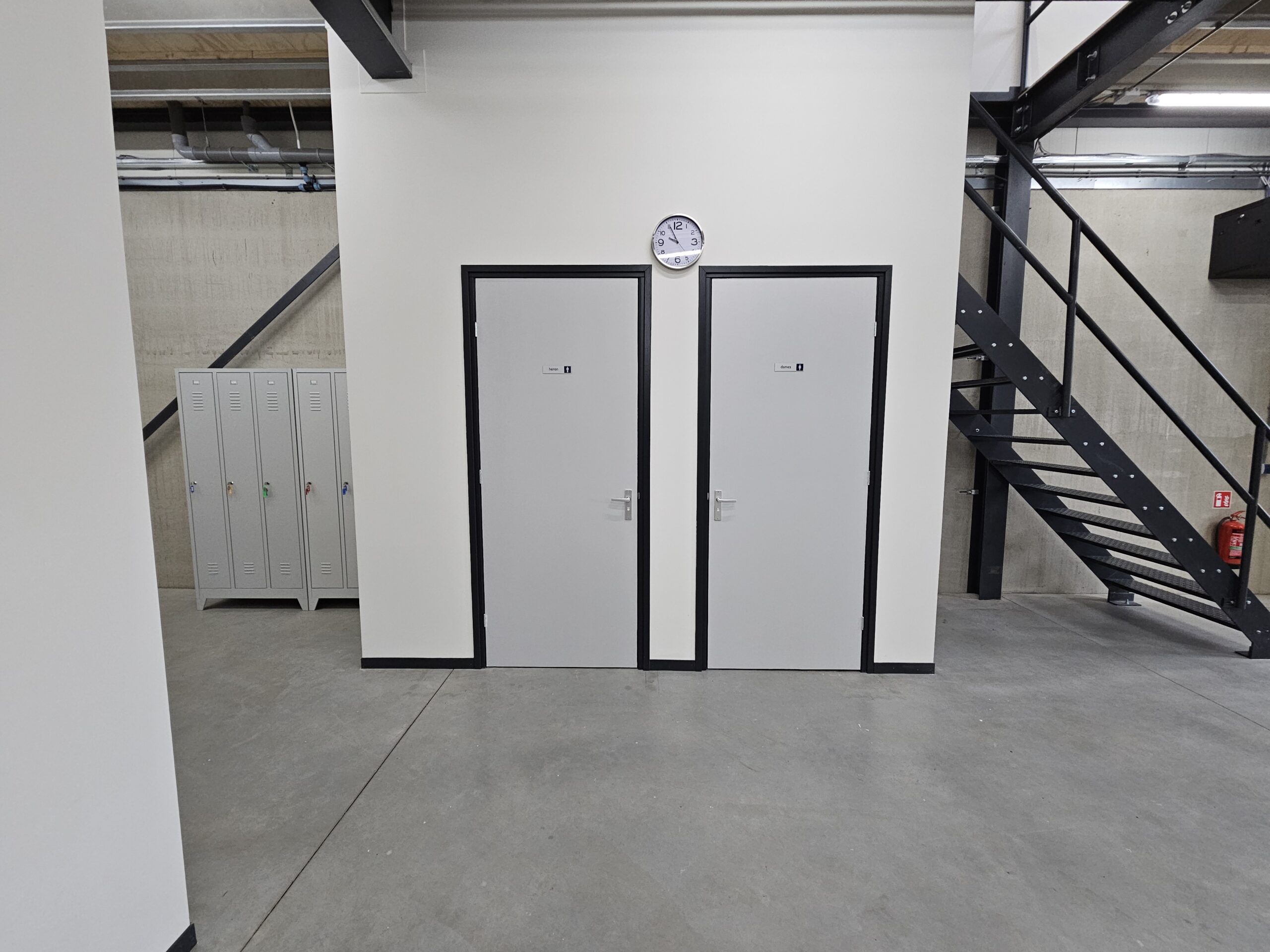 - De trap naar het kantoor is uitgevoerd in staal.